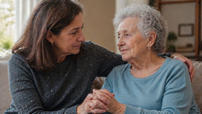Femeie si mama simbolizand mostenirea genetica