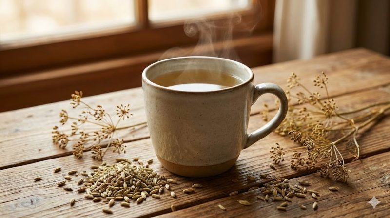 Ceai de fenicul și semințe de fenicul, imagine ilustrativă pentru susținerea digestiei