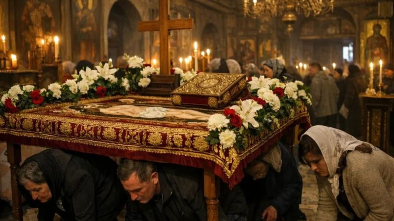 Trecerea pe sub ea este un gest de smerenie și de apropiere de jertfa lui Hristos. Este un moment de liniște, în care fiecare credincios se roagă și își pune gândurile în ordine.